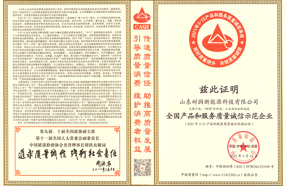 全國(guó)潤(rùn)滑油行業(yè)質(zhì)量領(lǐng)先品牌