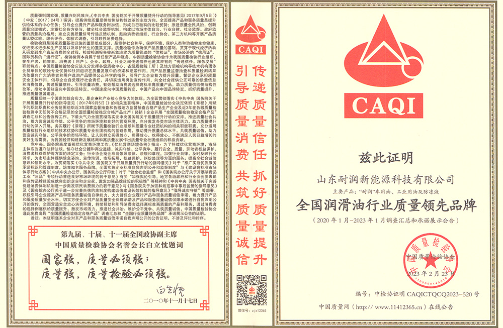 全國潤滑油行業(yè)質量領先品牌