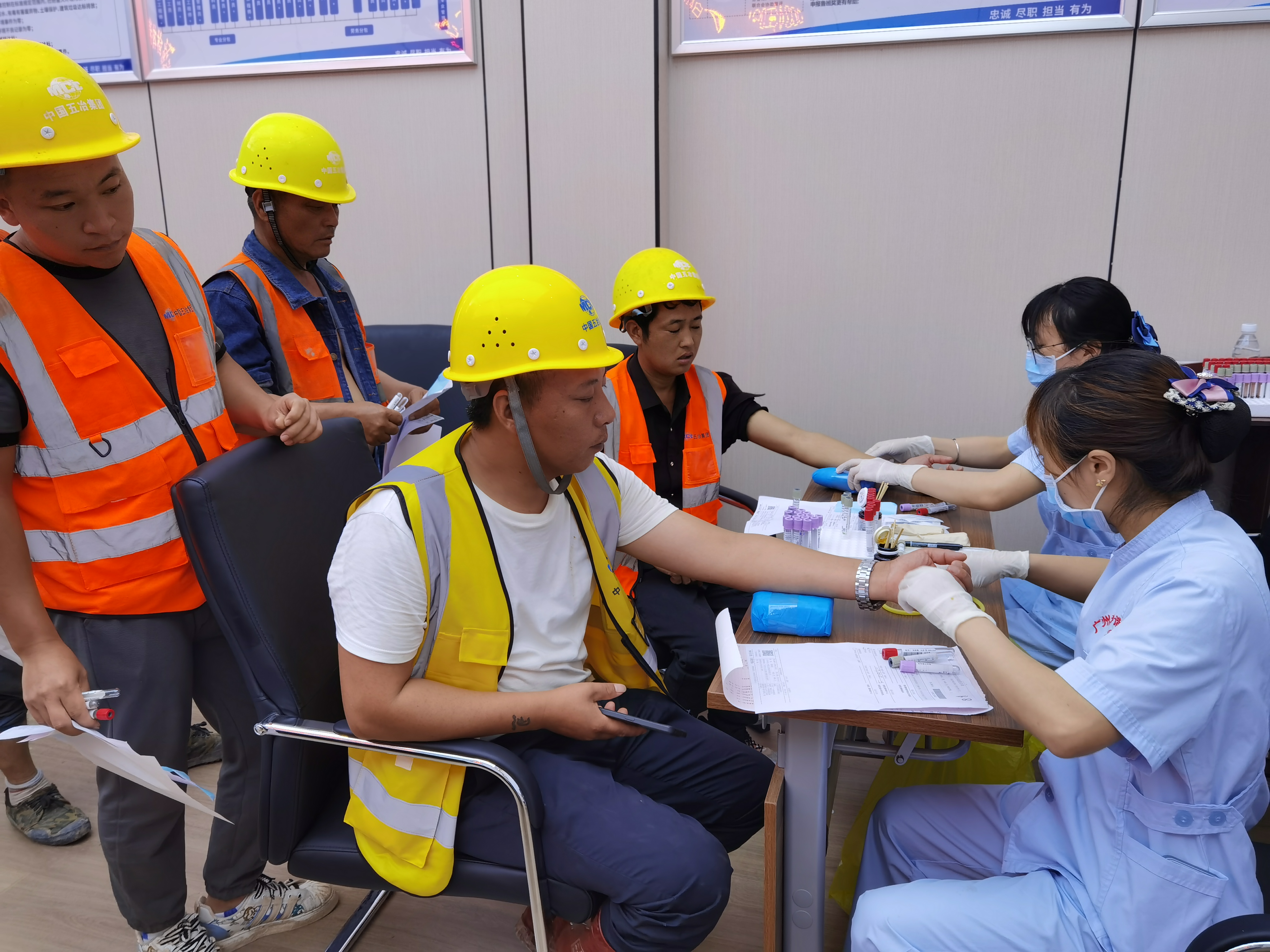 广州项目党支部书记从项目党建工作、安全管控、法制宣传及人文关怀等方面作经验分享??崭畚愕持Р肯蛉迦嗽毙擦讼敖阶苁榧枪赜诎踩闹匾凼黾跋喙匕踩煞ü嬷?,向坚守岗位、辛勤付出的一线作业人员表示慰问感谢,为大家送上菊花茶、冬瓜茶、王老吉等解暑降温物品,并组织开展免费体检活动,切实为一线人员提供了健康保障。