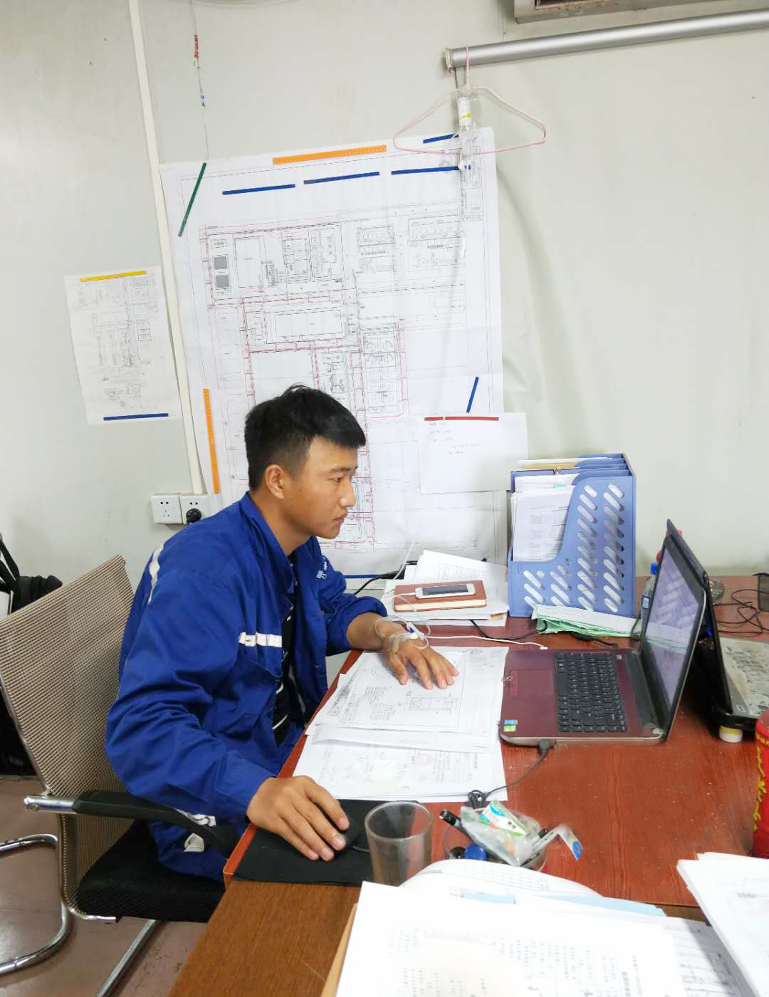 杨波今年24岁,2014年入企,主要负责湛江钢铁厂区内:化产改质沥青、化产炭黑部分、中央水处理改造土建工程。同事们眼里的他,是一位聪明能干,踏实进取,帅气十足的小伙子。由于近来湛江高温天气已达到高温预警,施工现场更加炎热,杨波依然步履坚实地走在施工一线,仔细盘查着现场每一处施工细节,豆大的汗珠沿着他黝亮的额头滑落,似乎就要刺破他的眼眸,他一声不吭的抬起袖子,用力的擦了一下,身上的衣服不知道被汗水浸湿了多少次,也不知道被阳光炙干了多少次,你无法想到,此时的杨波正顶着39度的高烧,依然无怨无悔的投入到紧锣密鼓的工作中。