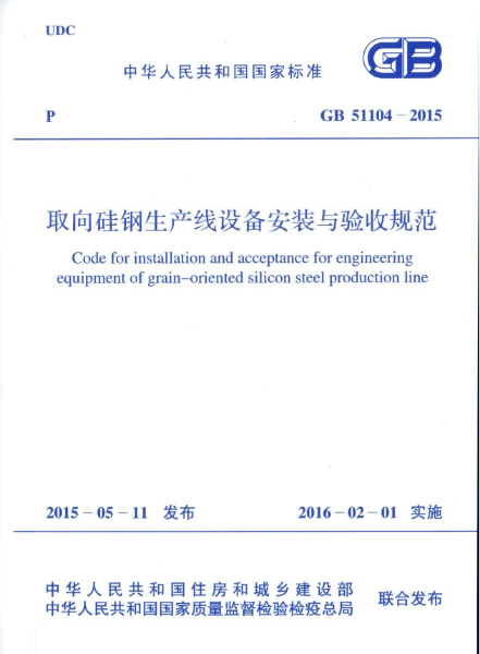 取向硅钢生产线设备安装与验收规范GB51104-2015