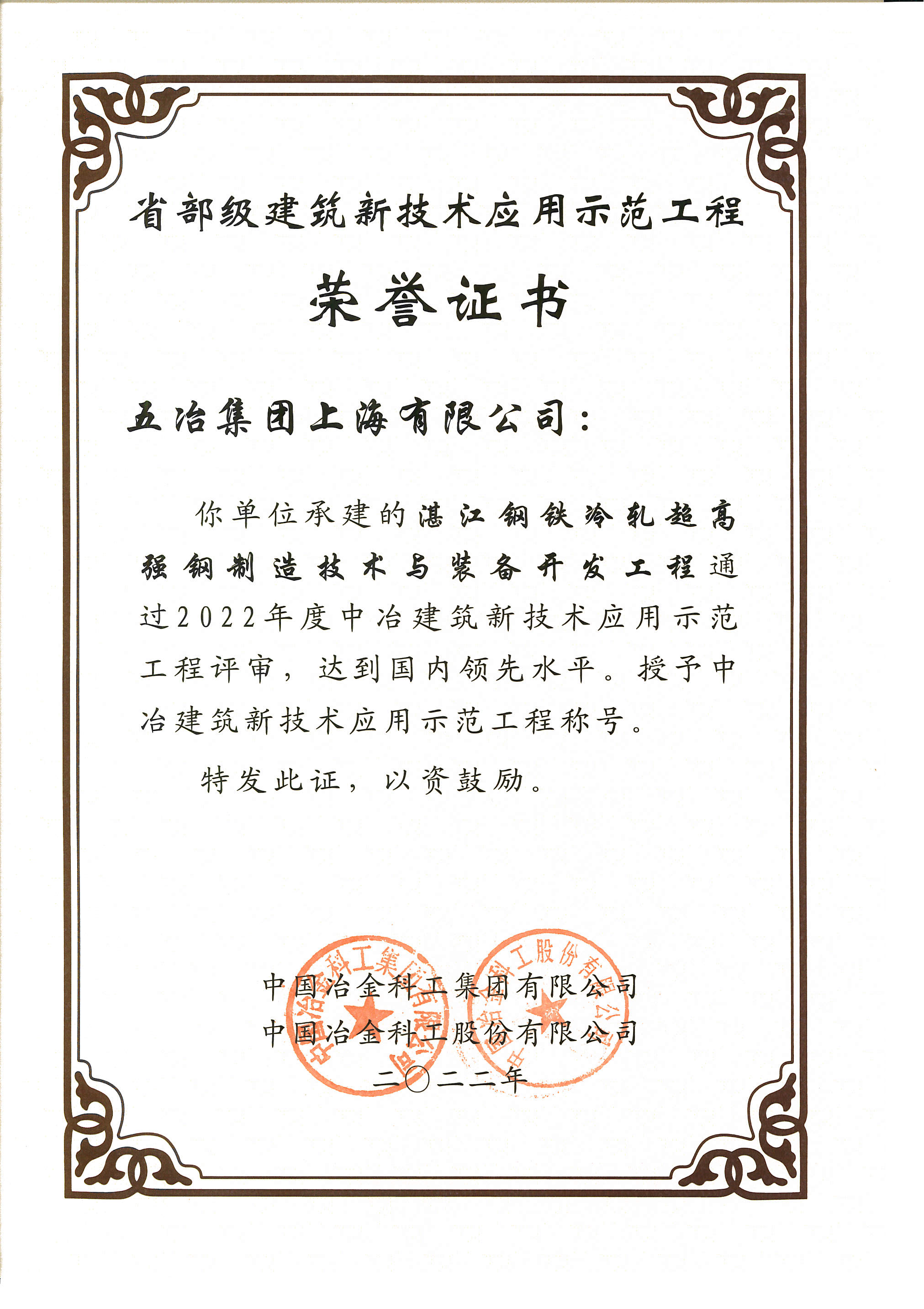 2022年湛江钢铁冷轧超高强钢制造技术与装备开发工程-国内领先