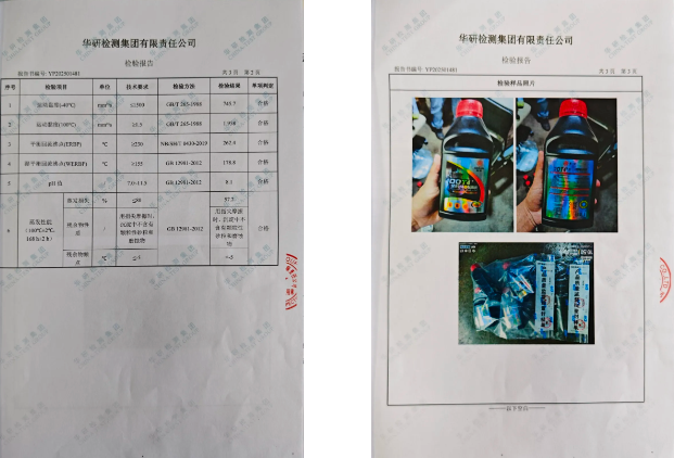 檢測環節由華研檢測集團嚴格按照國家標準執行,對運動粘度、平衡回流沸點、濕平衡回流沸點、PH值、蒸發損失等多項核心指標逐一核驗,最終出具的檢驗報告明確判定產品合格,權威性與公正性毋庸置疑。
