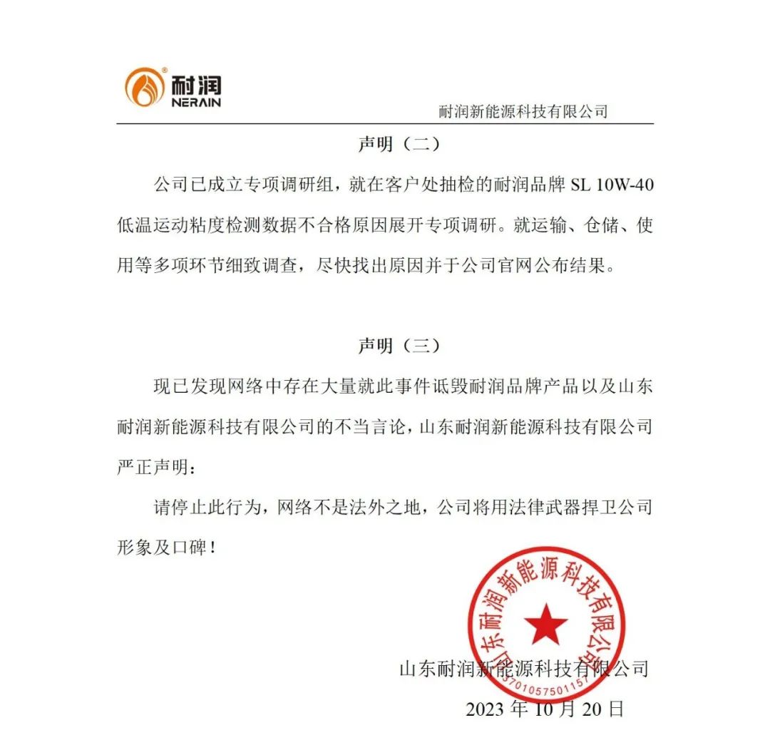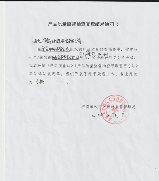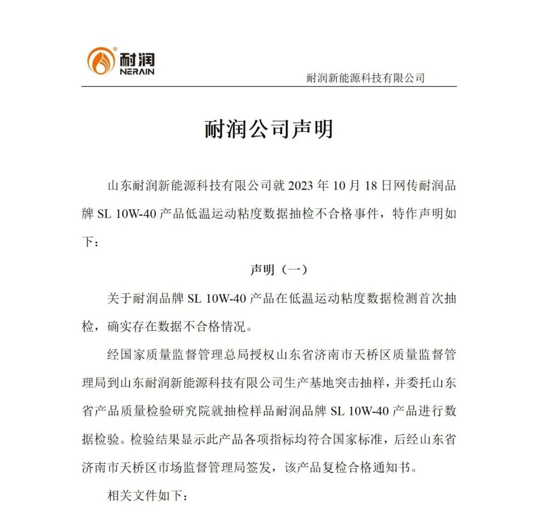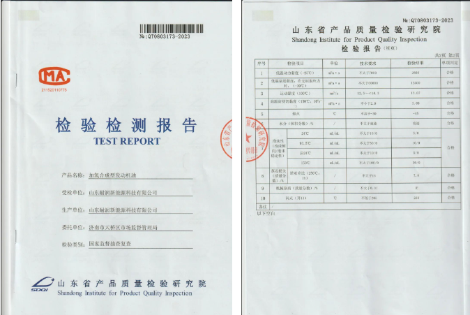 官方聲明!耐潤潤滑油質量檢驗研究院檢驗合格!